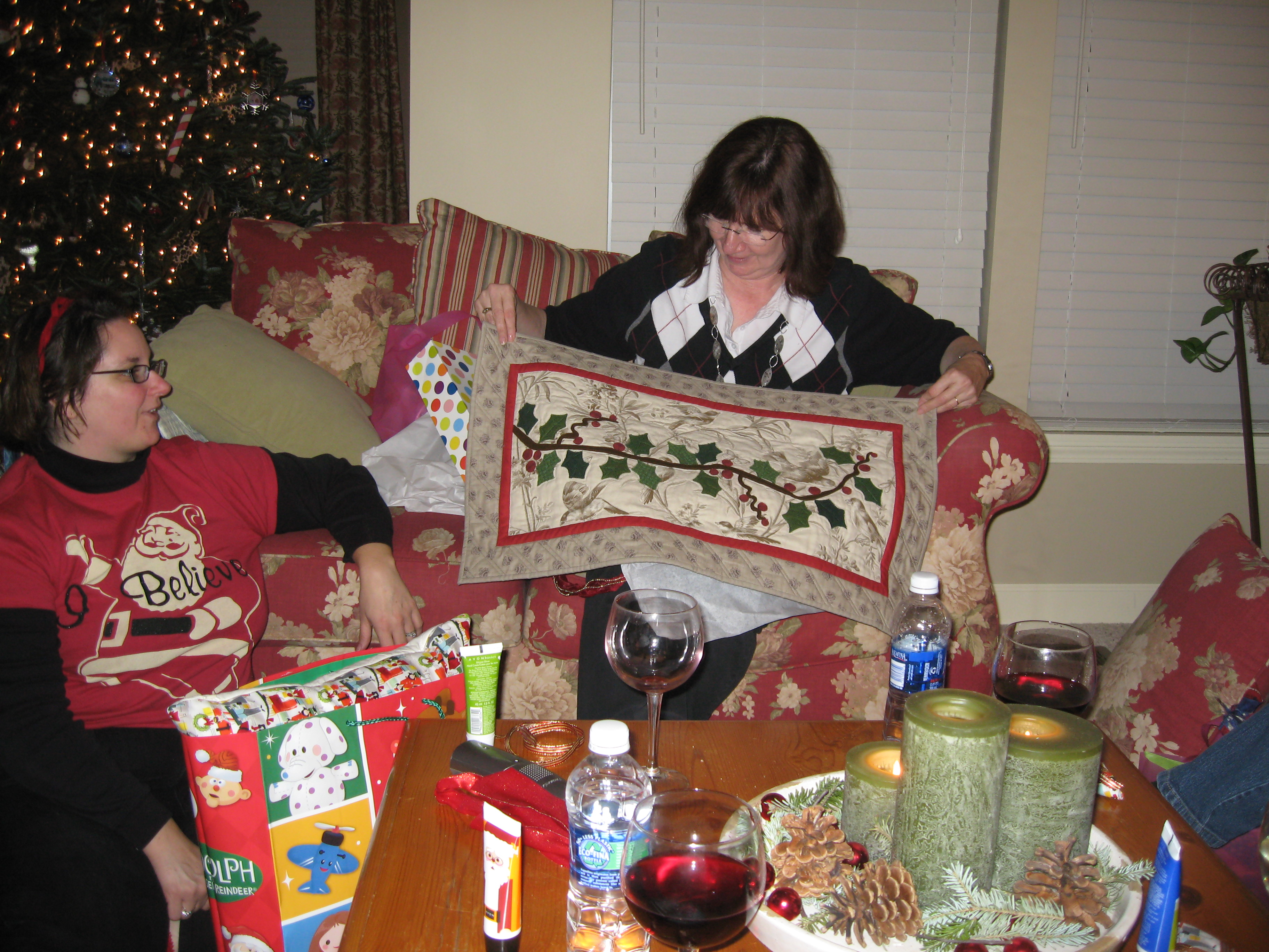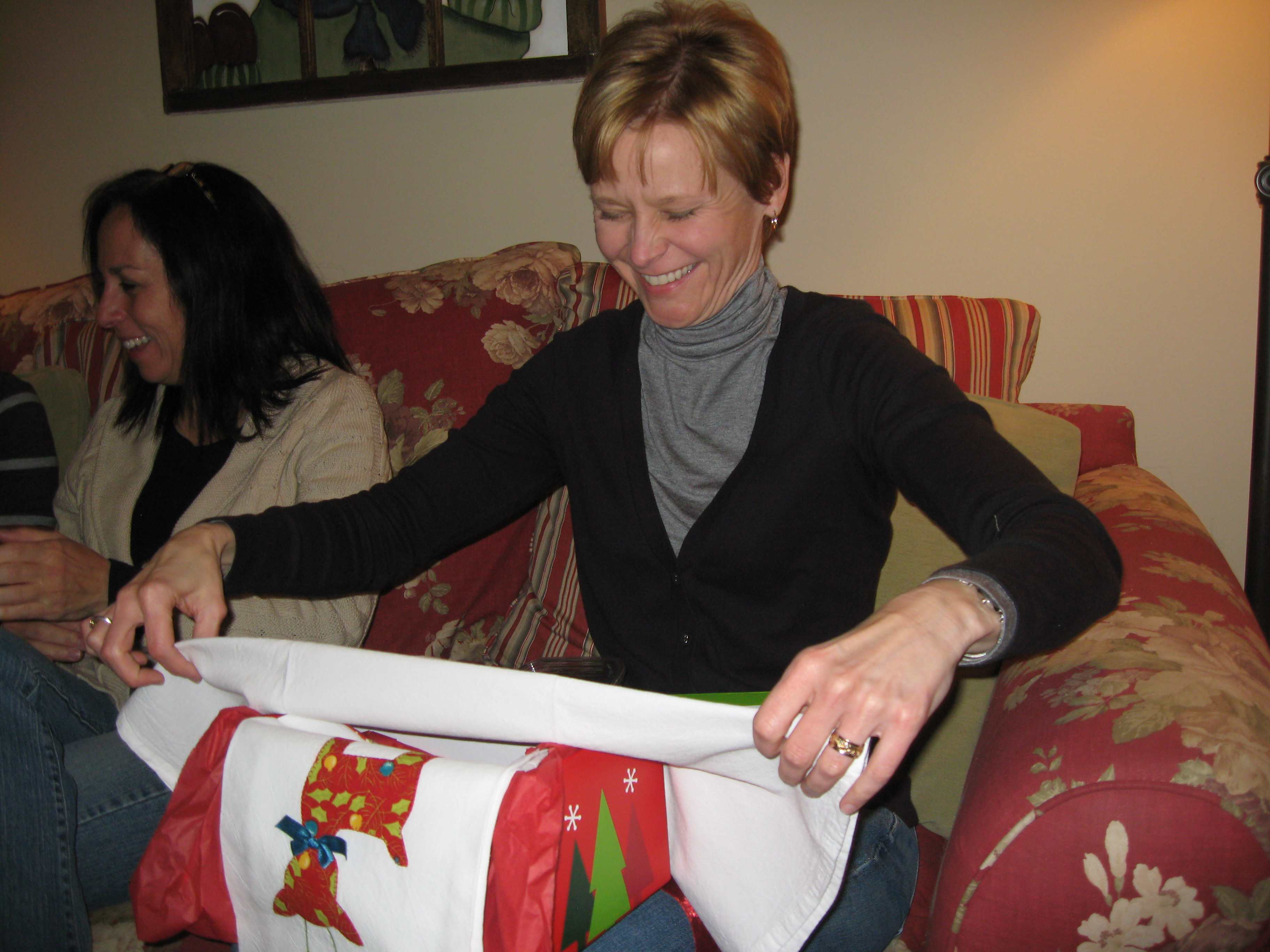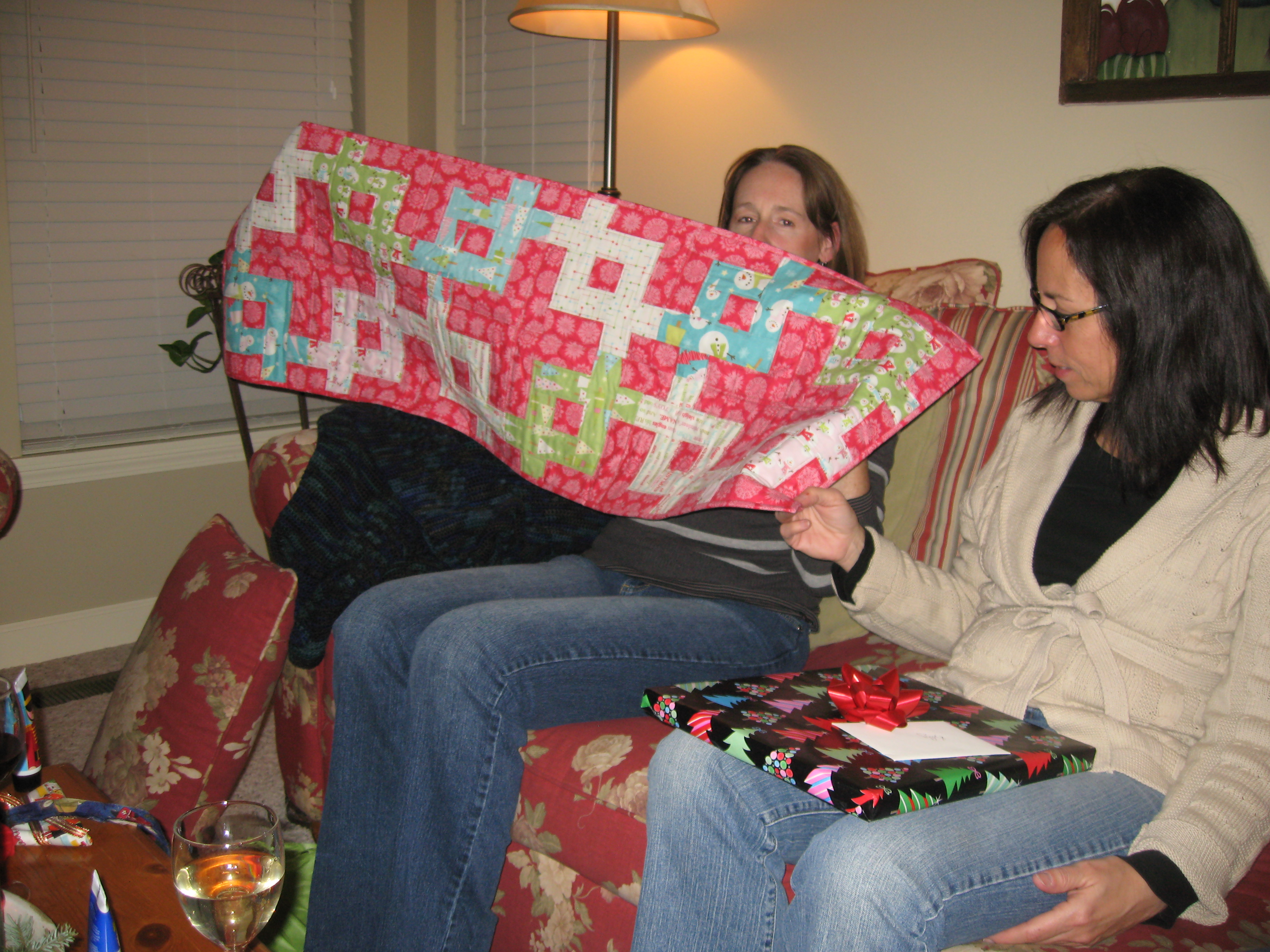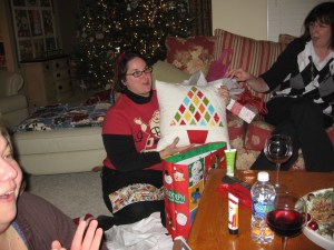We had our SewMod Christmas party at my house this year. Lots of food, wine, and fun…oh and let’s not forget the presents.