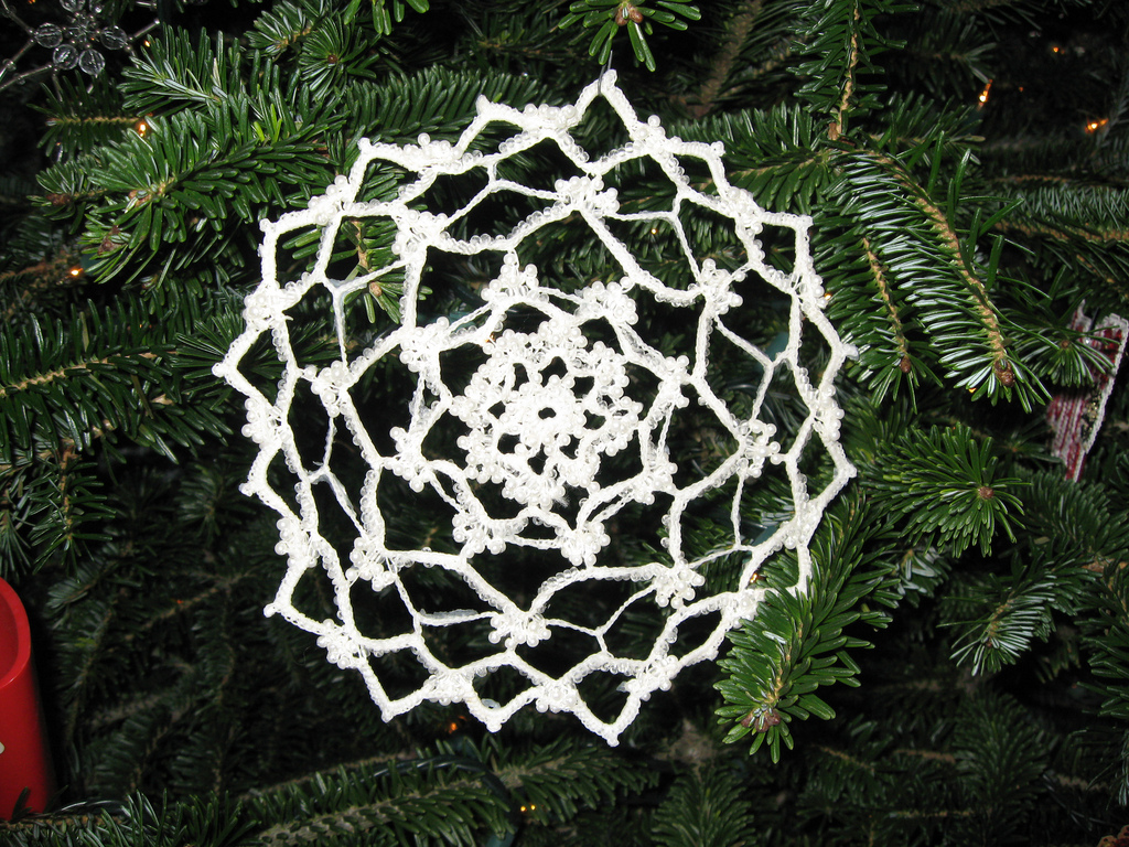This is one of the many snowflakes that my mom has made for me over the years. it’s crocheted and beaded and they are great fillers for all the spaces on the tree. Definitely my favorites.