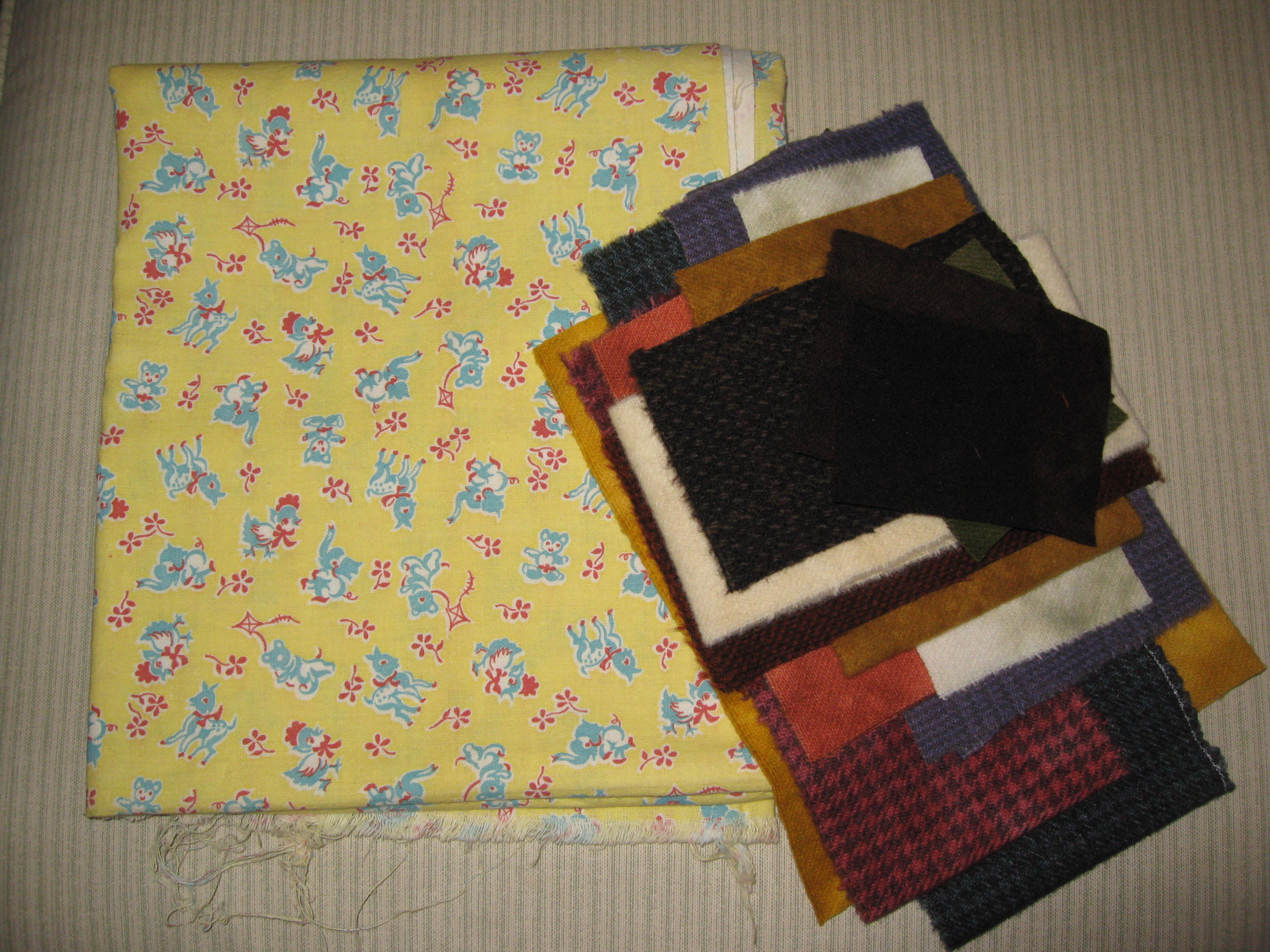 This was one of the feed sacks and some wool she had.
