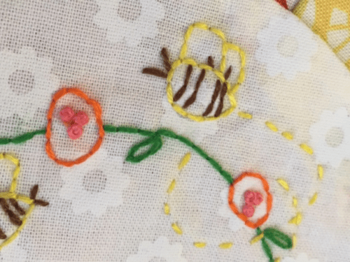 Are you ready to Bee wowed by the cuteness factor of our March door prize? I used an orphaned dresden block, Ring a Ring a Roses Candlemat dresden, from one of my demos and whipped up this little bit-o-honey.