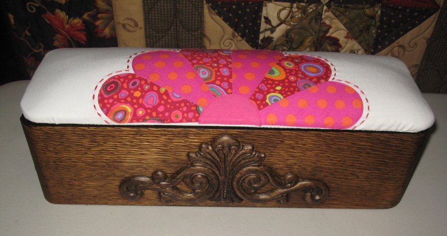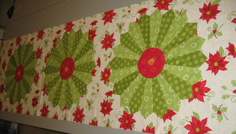 This project was a lot of fun & would make a really fun class for a quilt shop. We used the Easy Dresden tool instead of the paper template. We had it completed and the leaves appliqued in just one sewing day!