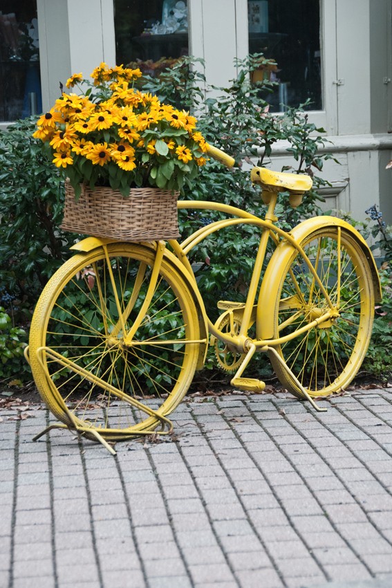 Then, I found out that my neighbor, Mary Lou, from Customphotopics was selling this beautiful greeting card of a yellow bike with flowers, and well, my interest grew a tiny bit more. I bought two of them and placed one in the studio for inspiration. I get to look at this yellow temptation every morning. Be sure and check out her site. The card was even more beautiful when I received it!