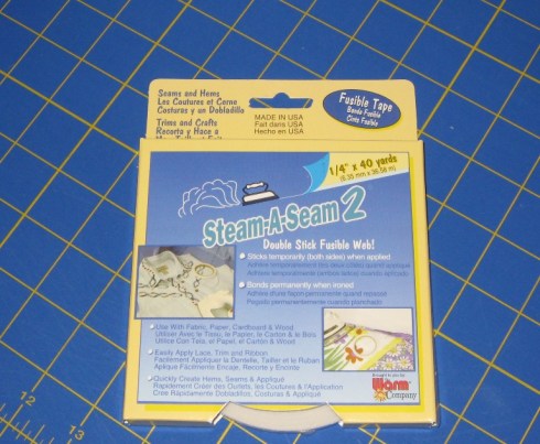 It’s Steam-a-Seam 1/4 ” double stick fusible web, available at Joann’s.