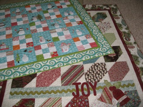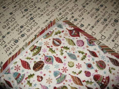 I’ve been trying to get some of my bindings done over the last few days. I don’t like to have something unfinished. It haunts me:) I had a couple of the Christmas quilts left. One of them was the Fruitcake quilt with blue marker on it. As much as I wanted to throw it away and forget it ever happened, I just couldn’t do it.