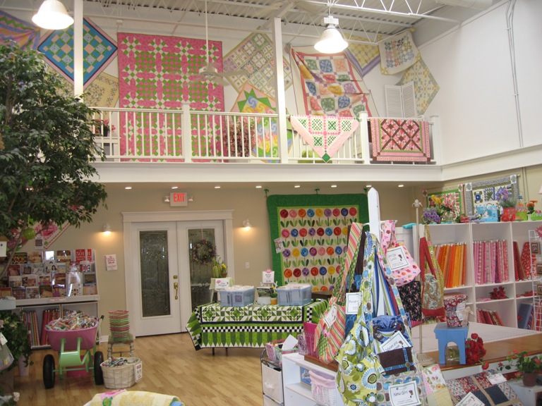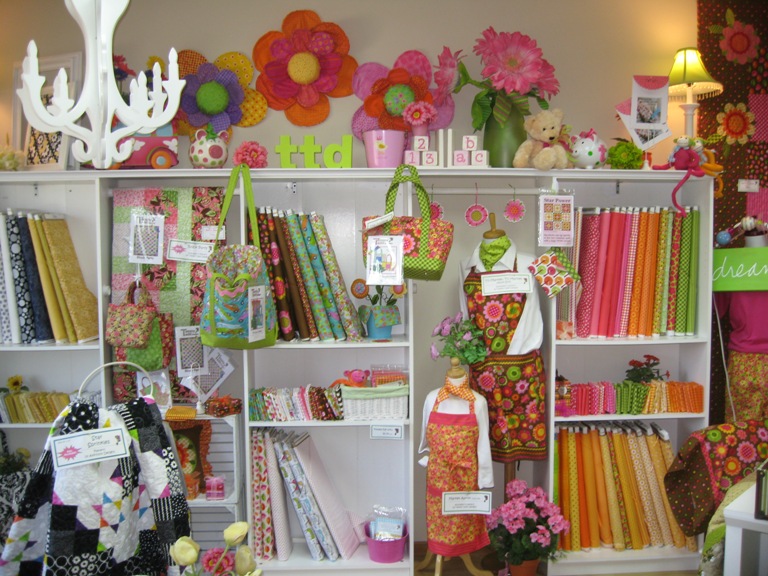 Tammy Tadds, Sycamore, IL.        If you love bright colors and fun fabrics, Tammy’s is the place. She’s been in the Quilt Sampler Top 10 Shop Hop magazine and designs her own fabric and patterns. She has a great decorating style. Her favorite colors are pink and green, and the shop reflects that with her pink phones, pink wheelbarrow, and don’t even get me started on the pink Christmas tree. This is one stop I don’t miss at Christmas!