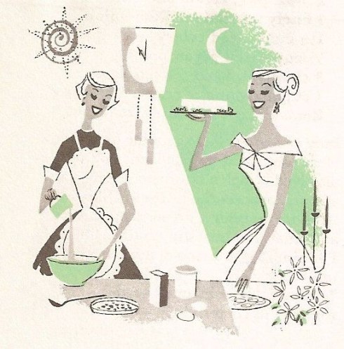 I have this romanticized vision of what it would be like to buy Pyrex for my robin’s egg blue kitchen, do all my household chores in a dress and heels, and bake cakes all day.