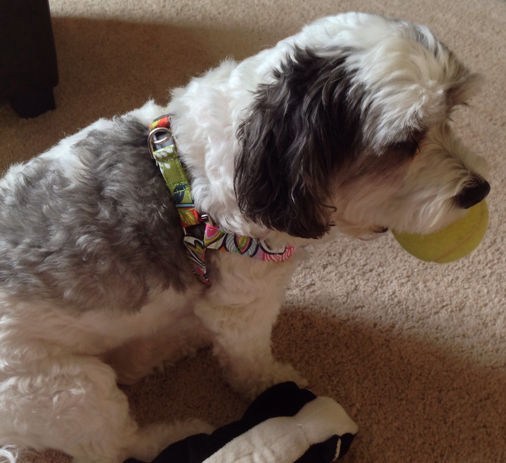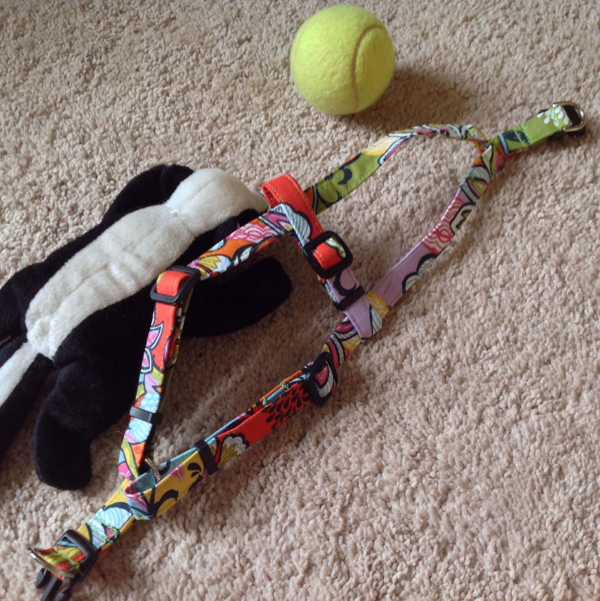 I’ve been making the harness and leashes since she was a pup. The hardware is a much better quality than the store bought ones and I can customize them for each holiday if I wanted. They take about an hour to make. Pretty simple. The only hard part is sewing around the hardware.