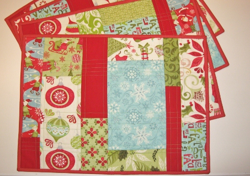 One last handmade Friday before Christmas. It flew by so fast. I can’t believe we’re only a few short days away. There may not be time to make these super cute and quick placemats, but you can add them to your list for next year. Or why wait for Christmas. These would be great for any occasion you need a quick gifty. I whipped these up pretty fast and all made from mostly scraps. I even quilted them myself, which if you know me, usually involves some degree of whining. No whining or naughty words. I promise…easy peasy!