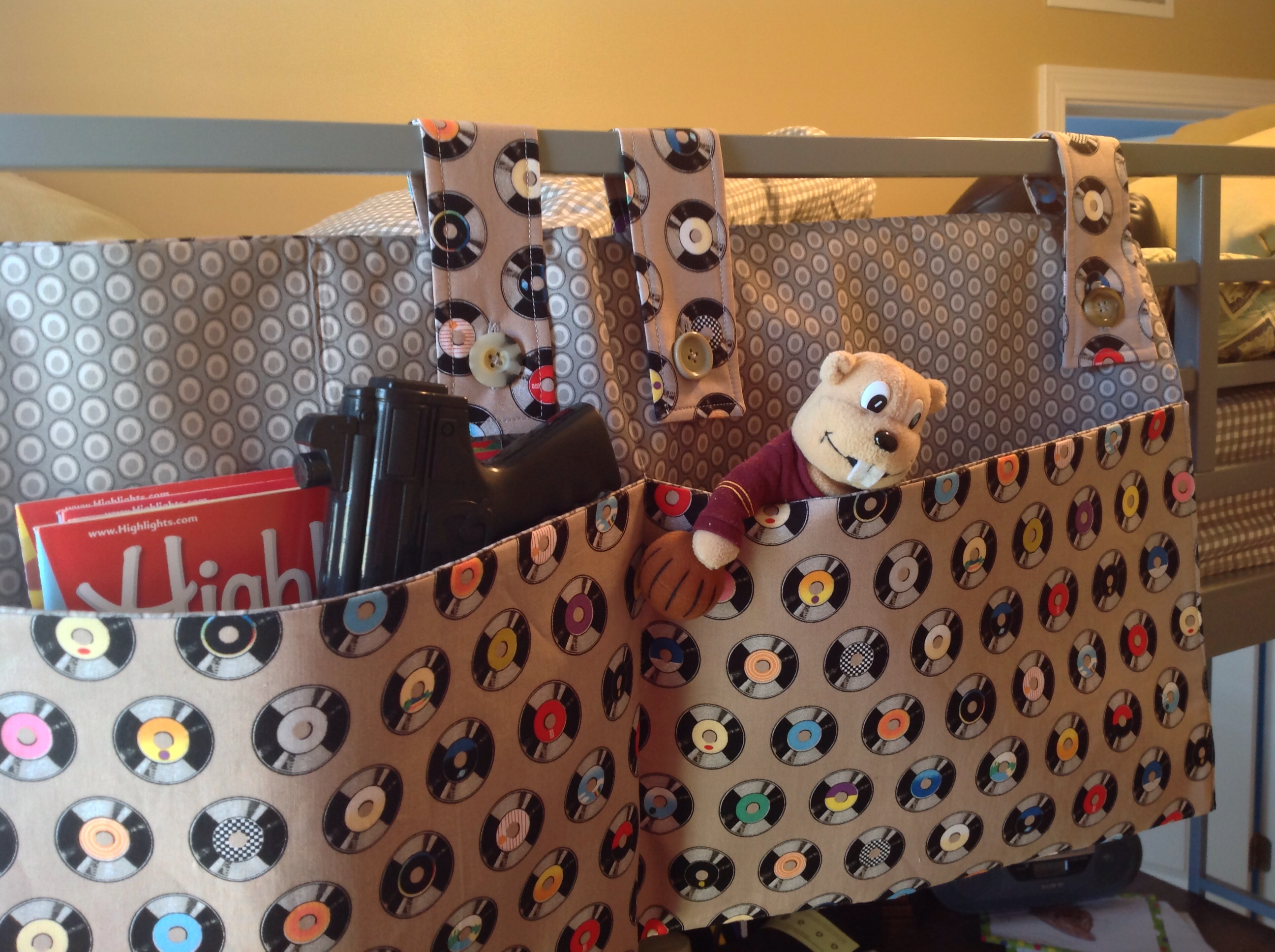 I made this handy dandy bunk bed caddy. I really thought a kid would like it since they usually just toss all of the toys under the bed. This is beneficial for mom and child! I used Riley Blake’s Geekly Chic Records. But I had to wonder…does a nine year old even know what a record is? Lol! We are down to the last yard of the record fabric. So get yours while you can!