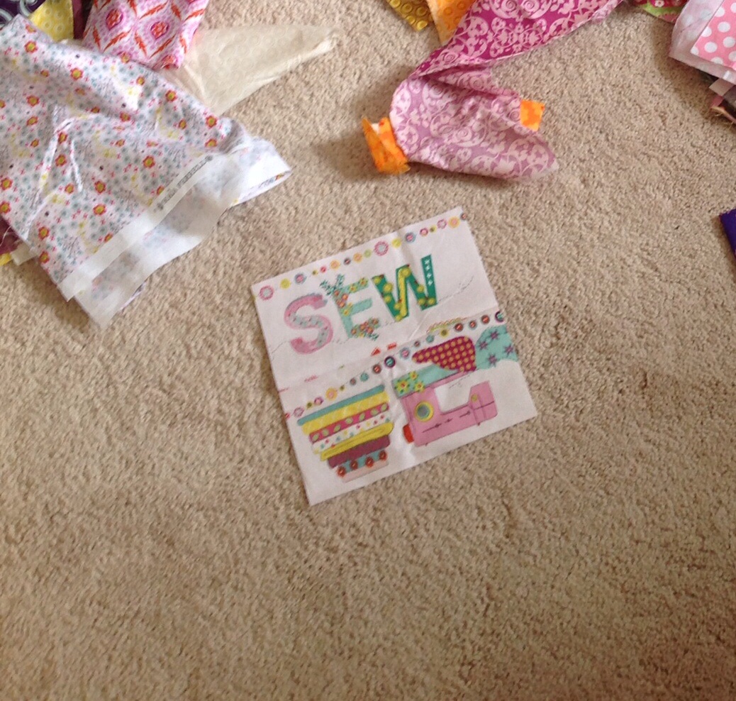 I wanted to use the words “Sew”, “Ride” & “Bake” for the front of the envelopes and use the pictures for the back. I cut the piece in half and sewed them back together so that when I was finished, the “word/picture” would be right sides up.