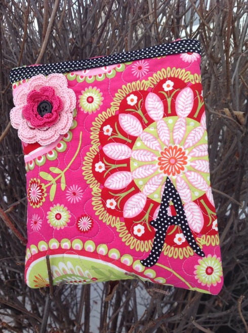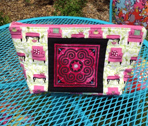 For ZombieGirl. A zipper pouch. Leftover fabric from my bag embellished and monogrammed for her sewing accessories. It’s my job to teach ZombieGirl that Sewista’s are stylish!