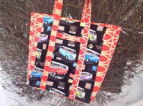Mine was inspired by a tutorial found here. I added fusible interfacing to all the parts and didn’t bind mine but instead turned in the sides and top stitched.