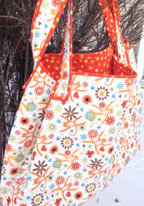 I quilted it with free motion lines. I didn’t draw them on first. I didn’t measure anything. I just went for it! And guess what? I’m in love with my new bag!