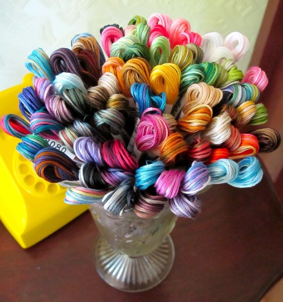 Have you tried the Cosmo Floss from Japan? There is none better. The good ole stand by, DMC, doesn’t even compare. If I had a local dealer of these, I’m afraid I’d be broke. It’s like candy. All the colors we’re used to but it doesn’t knot, it slides through the fabric like butter, and lays flat. This floss is about $1.00-$1.20, but well worth it. It’s available at the Stockroom on Etsy.