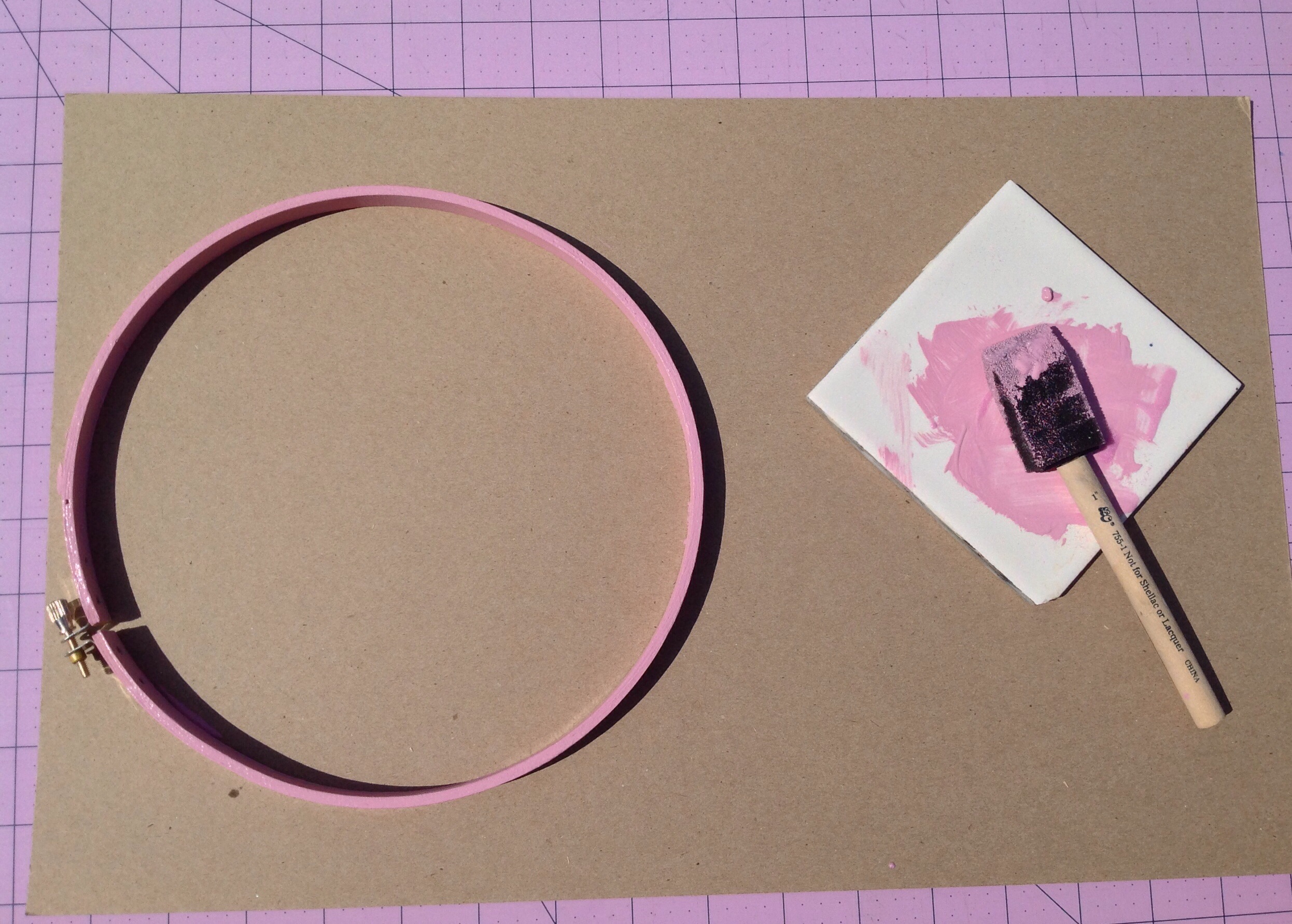 Start by painting your hoop with the craft paint and allowing it to dry.