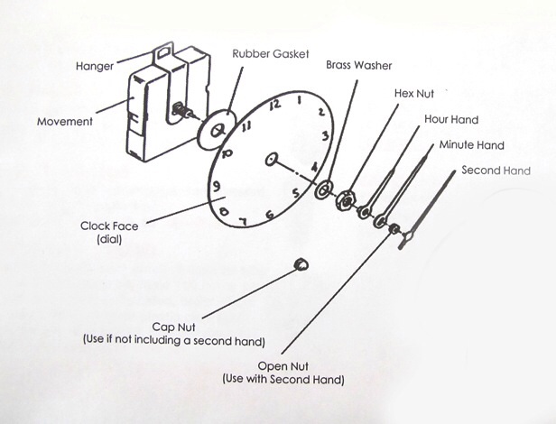 Add the clock mechanism following the instructional diagram provided with the packaging. Tip:Make sure to press down and get a snug fit with the ‘minute’ hand. Otherwise it will spin and loose time. I also removed the rubber washer because it created too much bulk and my clock still keeps great time.