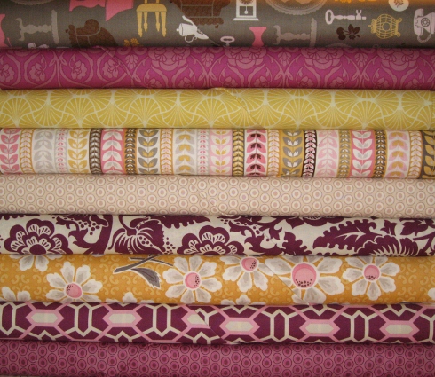 These are the other Bonjour fat quarters to complete the quilt… greens and purples. It’s gonna look awesome!