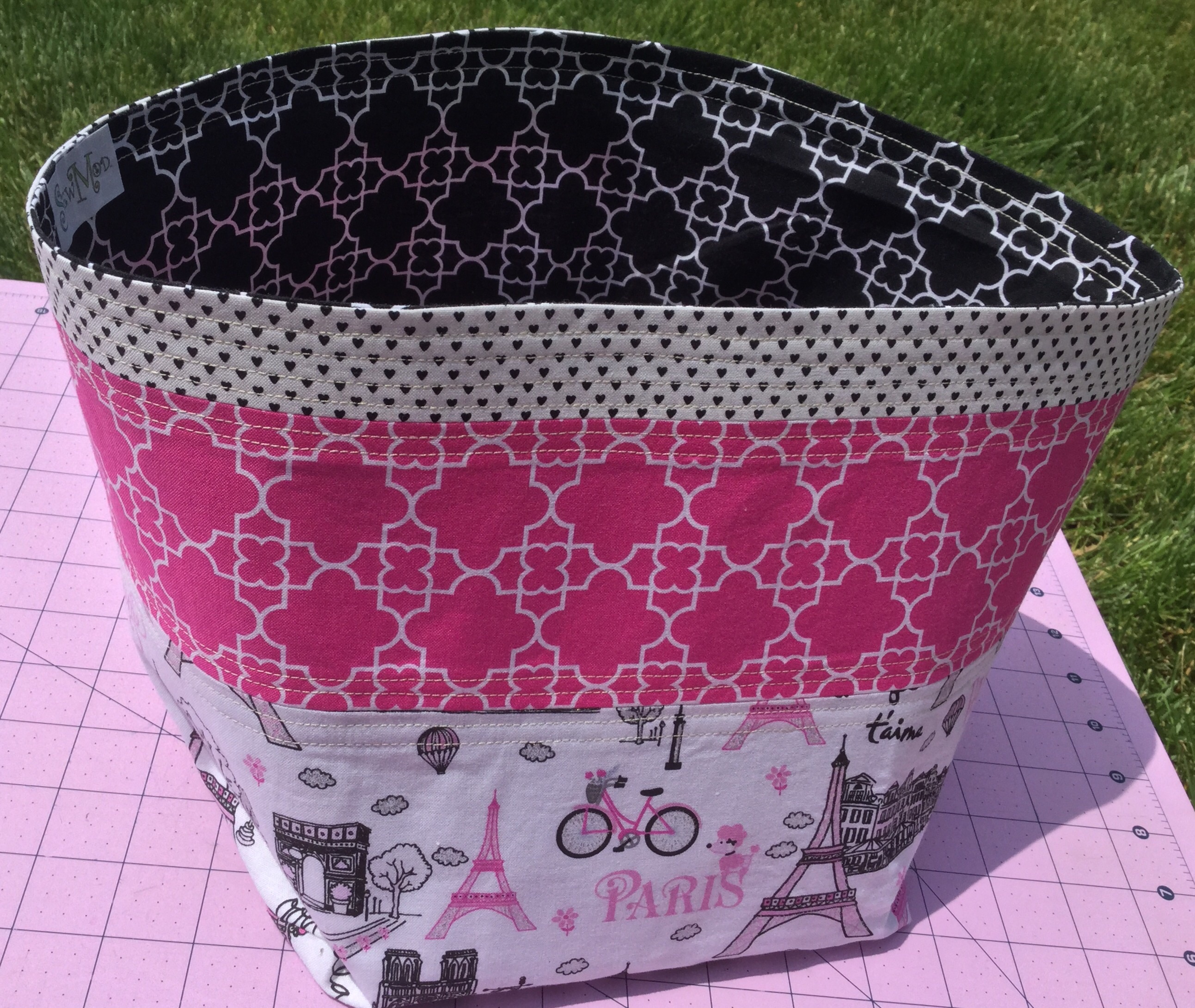 Our June guild swap was ‘fabric baskets’. I used that super cute Paris Bonjour fabric that arrived from Timeless Treasures and a tutorial found at St. Louis Folk Victorian. The instructions were easy and clear, which made this basket a breeze but made it difficult for me to bid it adieu because it turned out so darned cute! Not to fret. It went to a good home:)