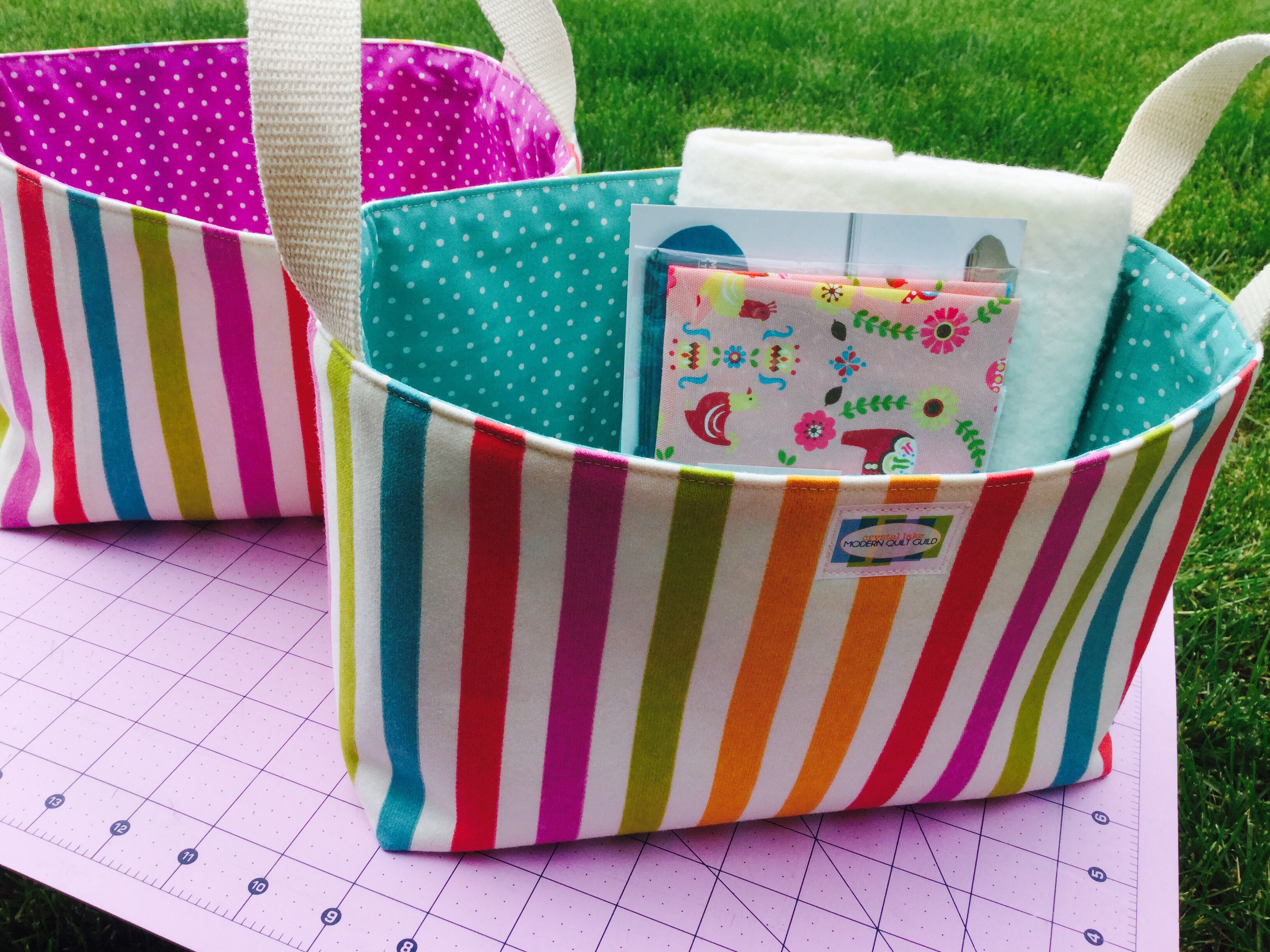 What I received in return was one of these fab one hour baskets made by Shelley over at Elsie’s Girl. Don’t you just love that stripe & polka dot!