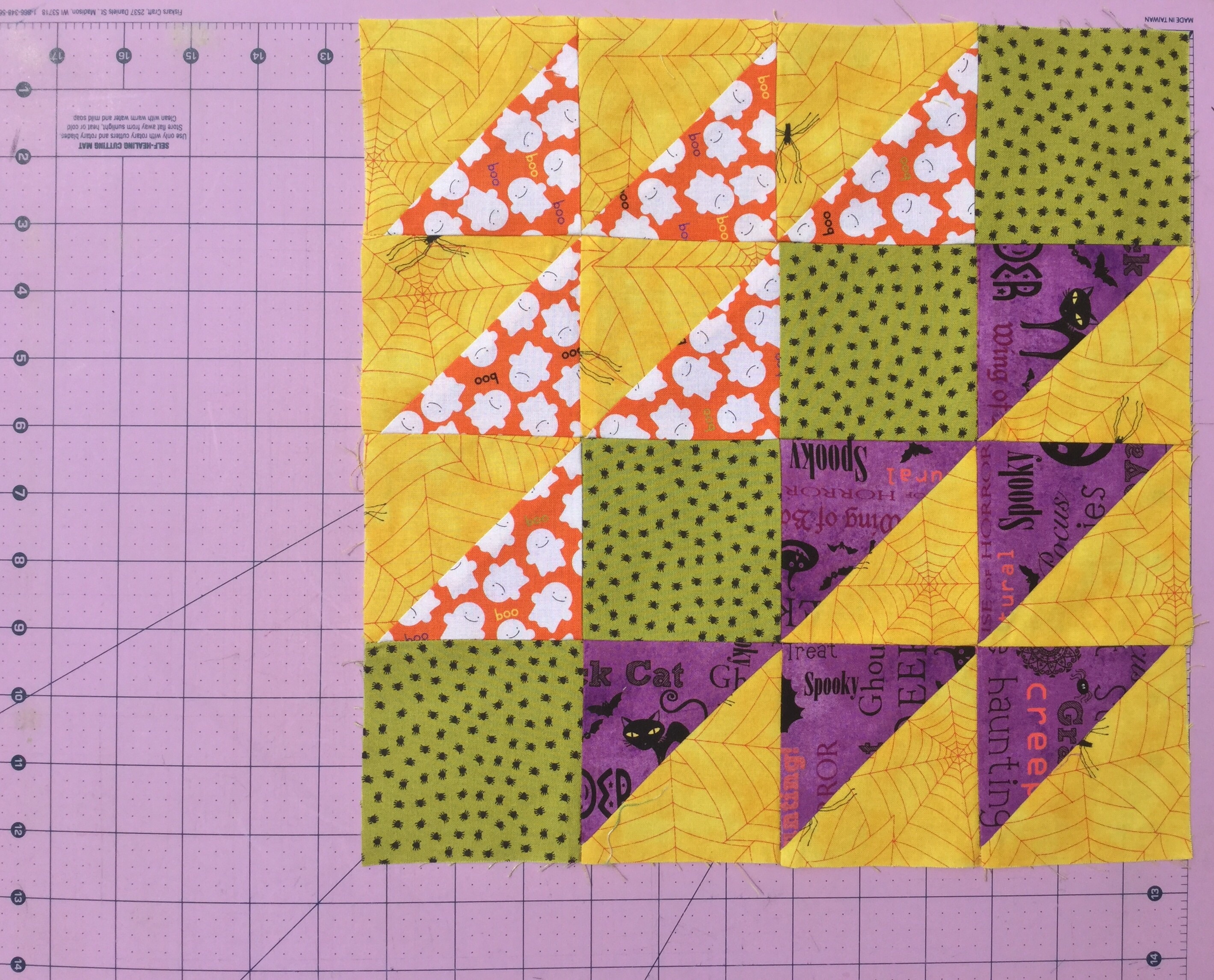 And lastly, I spent some time making a block for our next guild lottery entry. We’re doing a Halloween theme with a specific color palette this time using paint chips that Shelley picked…A Modern Halloween.