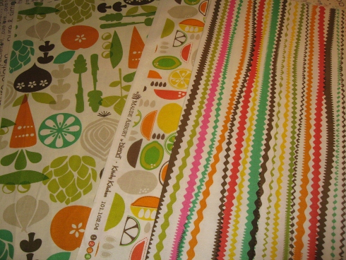 Kitchen prints from Maude Asbury. I’m thinking edging for tea towels with some embroidered fruits and veggies for these.