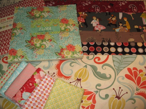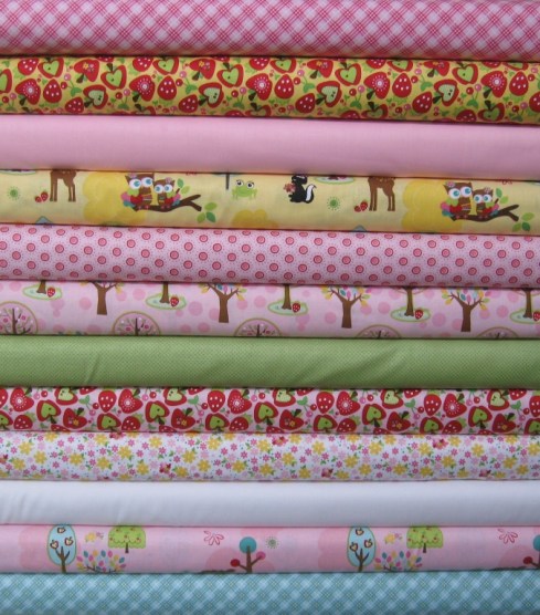 The full order, all 23 bolts in this collection, arrived yesterday. It has 4 main colors to it…blues , greens, yellows and pinks, along with some plaids, daisies , and solids.