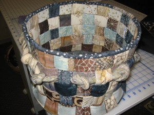 And just look at this awesome woven basket made out of Batiks that the store is giving a class in. It’s called Knotty Baskets.