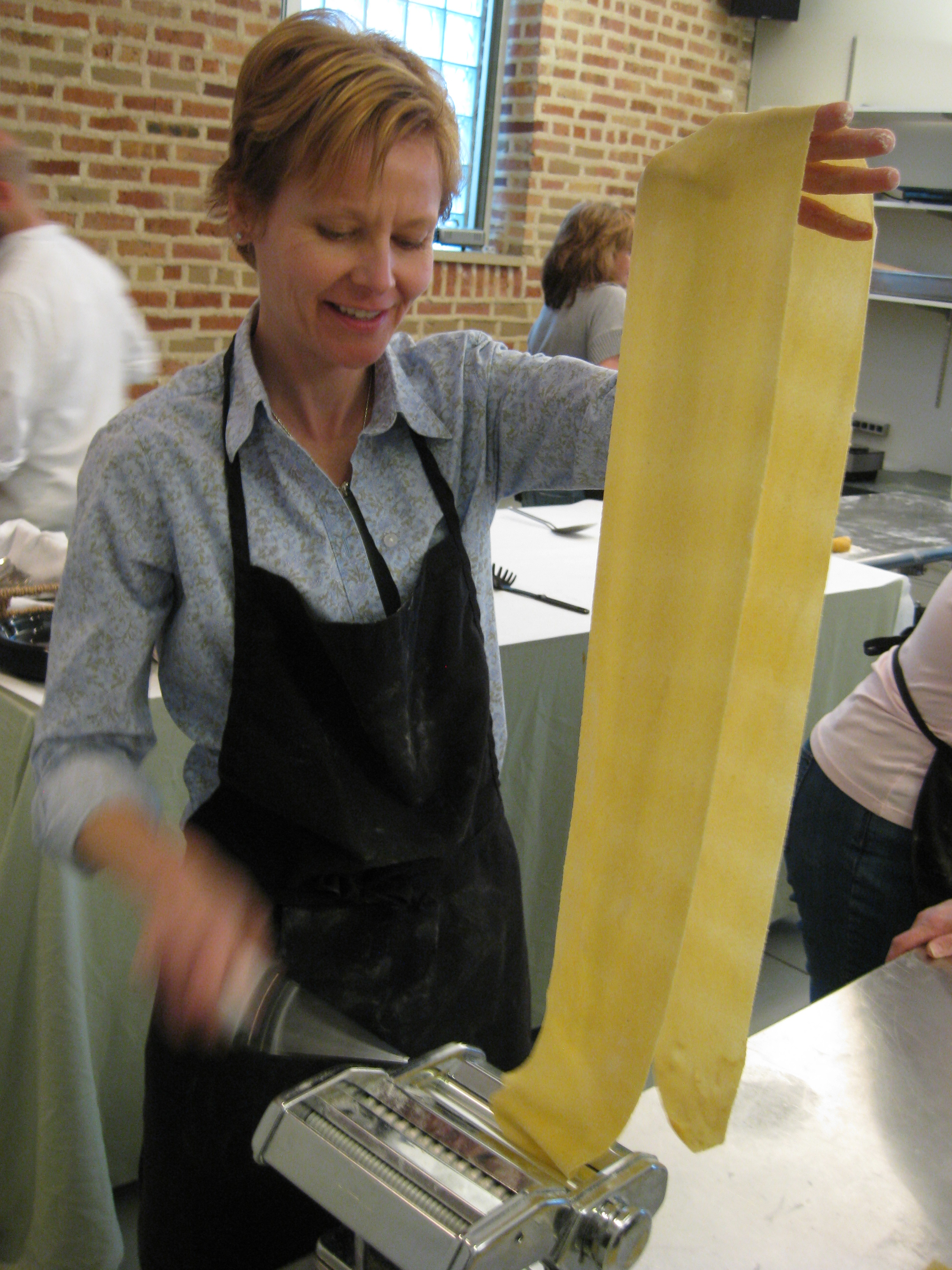 Check out Shelley’s wrist action…her pasta sheet ended up longer than her work table.