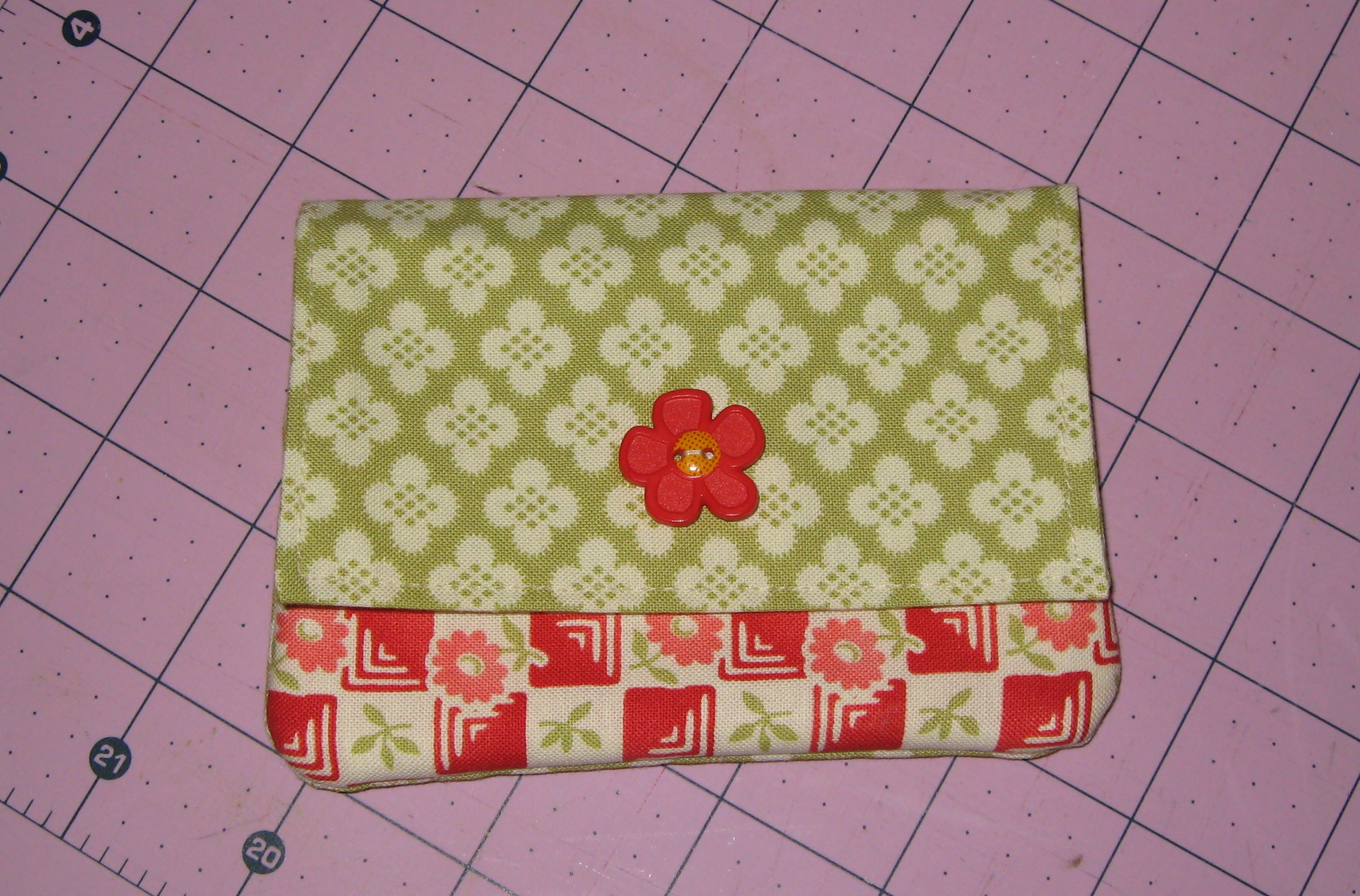 I’m working a quilt show on Friday in Morris, Illinois called Pieces From the Heart. We kitted up some cute stuff, including this little Bliss wallet I worked on yesterday as a store sample. It’s a Lazy Girl pattern called Wonder Wallet. Super easy. The folded down pocket is for your change.