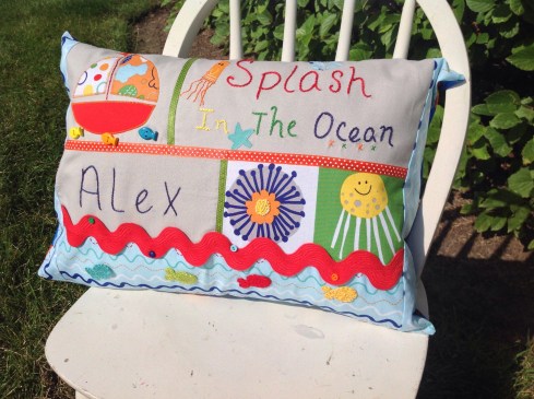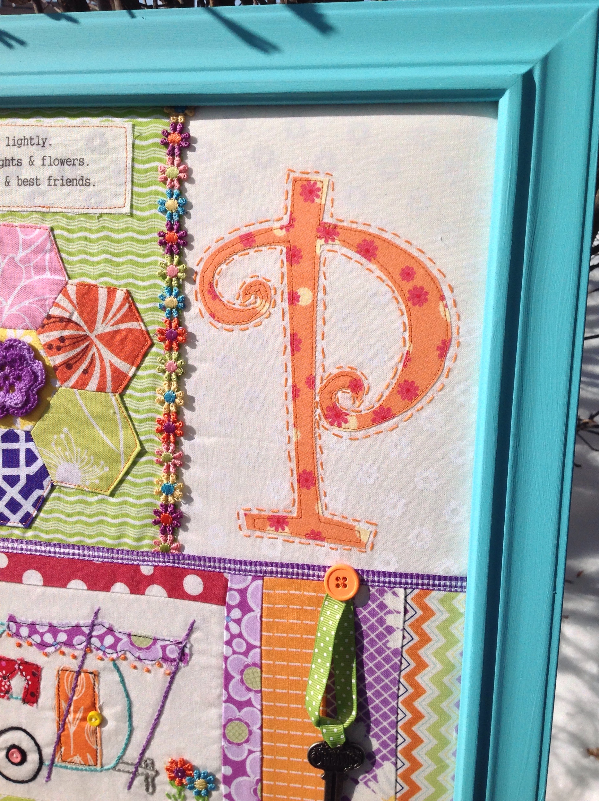 I like projects that I can embellish and use different techniques like appliqué & embroidery. A chain stitch for the Splash really made the words ‘pop’ and adding the accent French knots to the anemone gave that some extra dimension too.