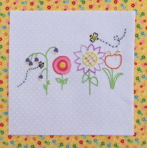 Buzz on over to Moda Bake Shop and quilt along with me and many, many others as we stitch up some of these adorable embroidery blocks from Pamela Morgan from My Sweet Little Stitches.