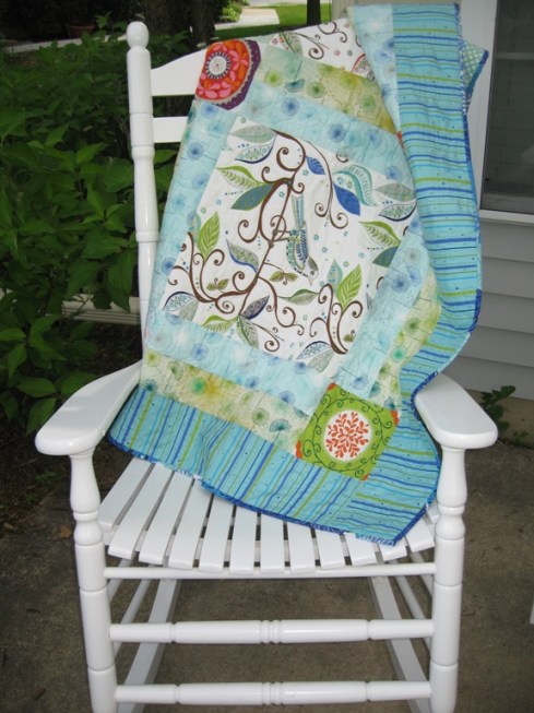 This quilt was made from the Heather Mulder Peterson book, Living Large and the pattern was called Pretty In Pink.The original pattern had several appliqued flowers in the corners but we choose to leave them off. It was so sweet, it didn’t need any extras…it’s a Pick A Bunch of sweetness!