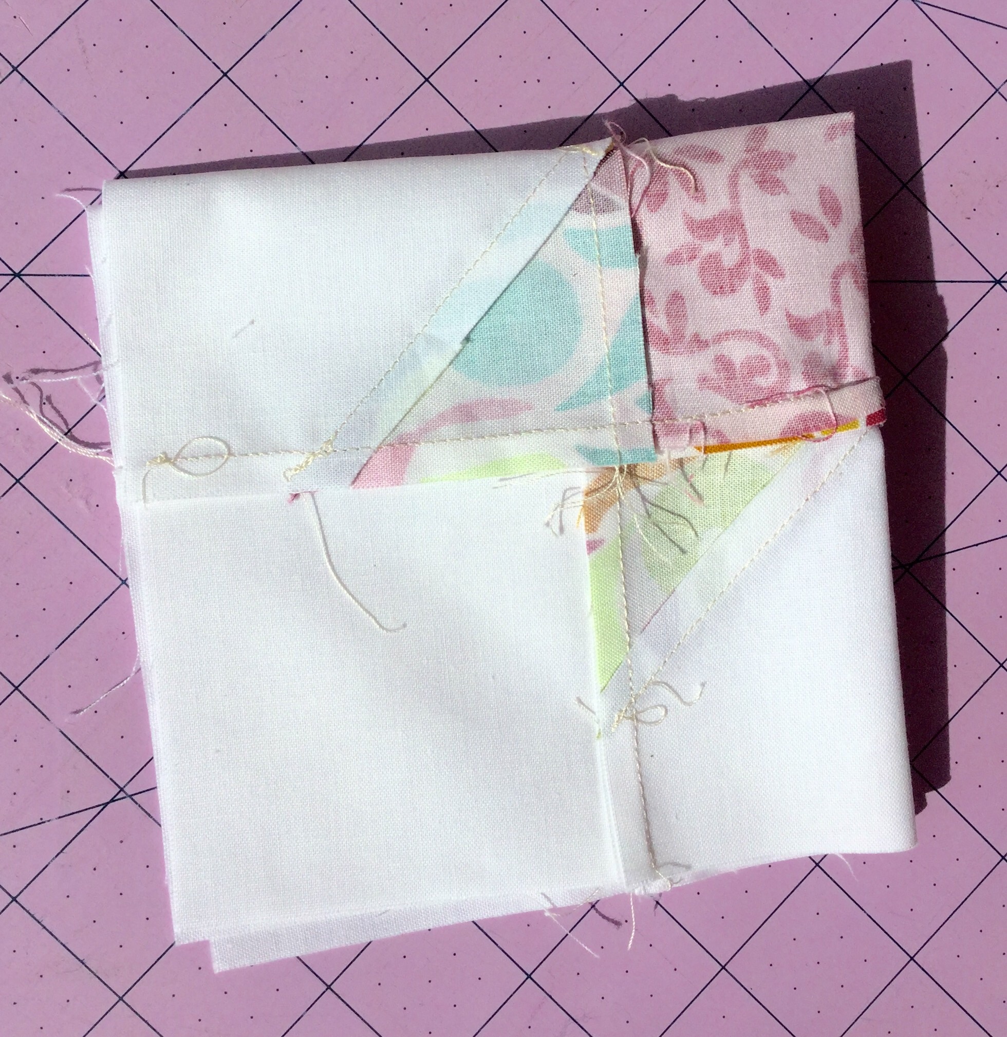 Fold your pieced block in fourths and finger press.