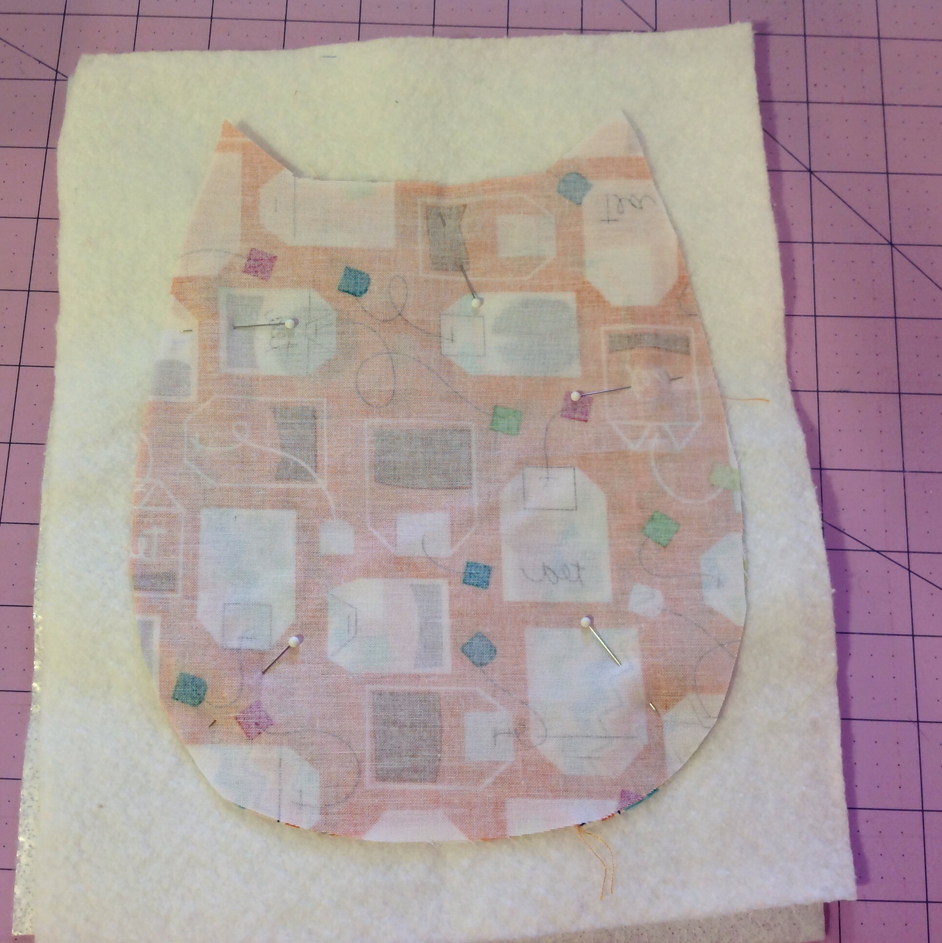 Layer your fabrics as shown… Insul-Bright, Warm & Natural Batting, back body of owl face up, and front body of owl face down.