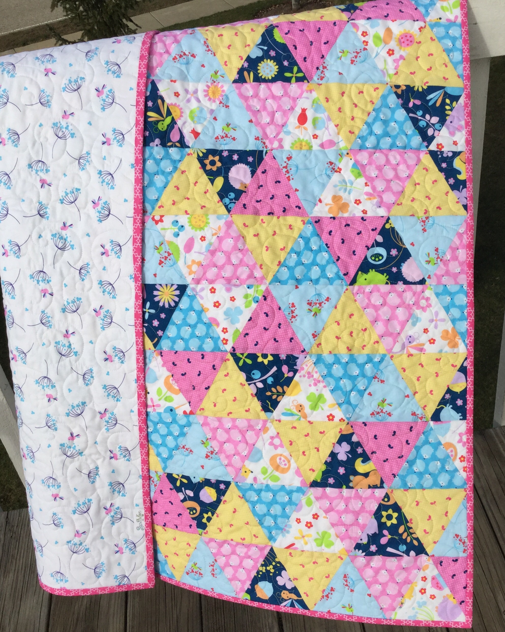 Pattern includes step-by-step instructions for assembly. Equilateral triangle quilts are fun and fast to make. After you make one using the pattern, you’ll want to make more! The quilt can either be cut using the template provided in the pattern or using the Creative Grids 60 degree triangle ruler found here. The Equilateral tutorial can be found here if you’d like more info on how to assemble it.