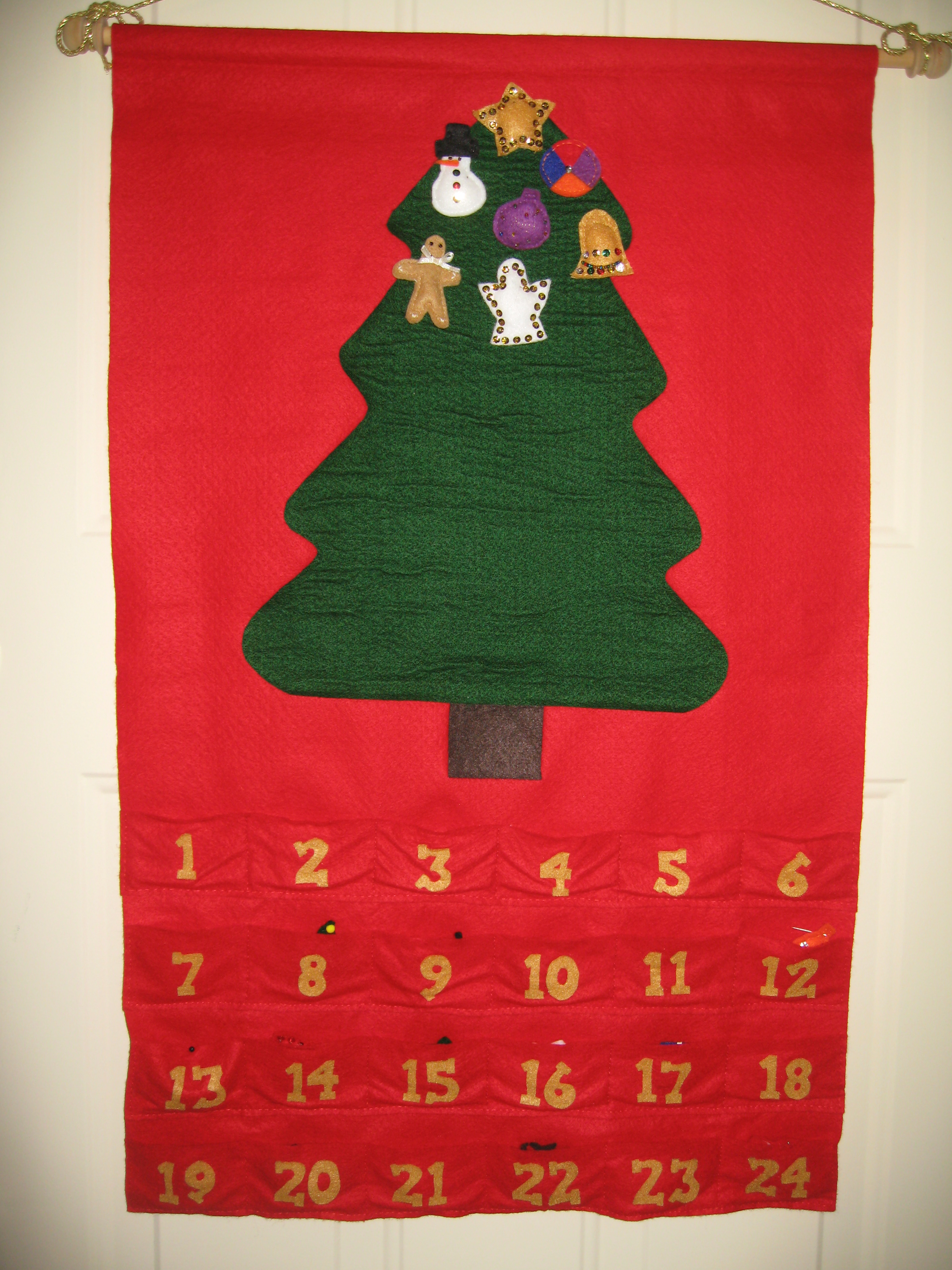I have lots of felt scraps. One year when my mother-in-law’s house burned and she lost a lot of her Christmas decorations, I made her an advent calendar out of felt. It was supposed to be a replica of the one she lost.