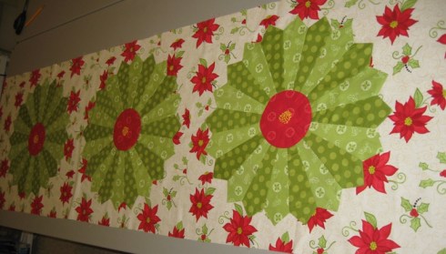 Of course, I had to make a Christmas one! I used Heather Mulder Peterson’s Christmas line from last year, At Home for the Holidays. I embroidered 6 strand french knots in the middle like a dresden flower. This one isn’t quilted yet but soon will be. It will be available in the Etsy Shop also…that is, if I can part with it:)