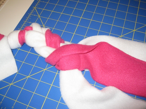 An easy gift that you can make with your leftover fleece scraps is a doggie rope.