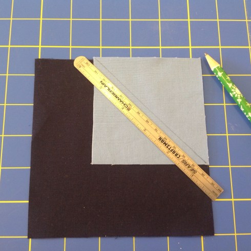 On the back of the light blue squares, mark with a pencil from corner to corner.