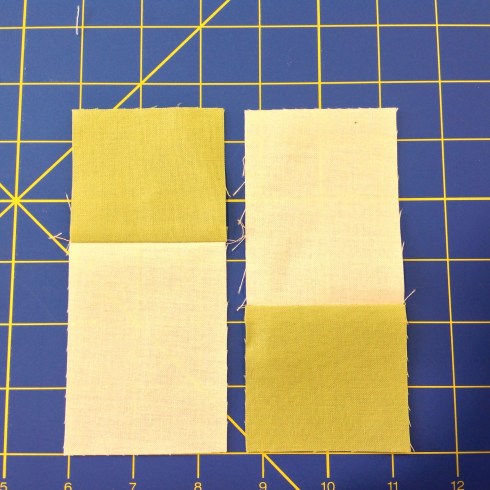 For the center cross, cut (4) green 2.5″ squares and (1) 2.5″ orange square