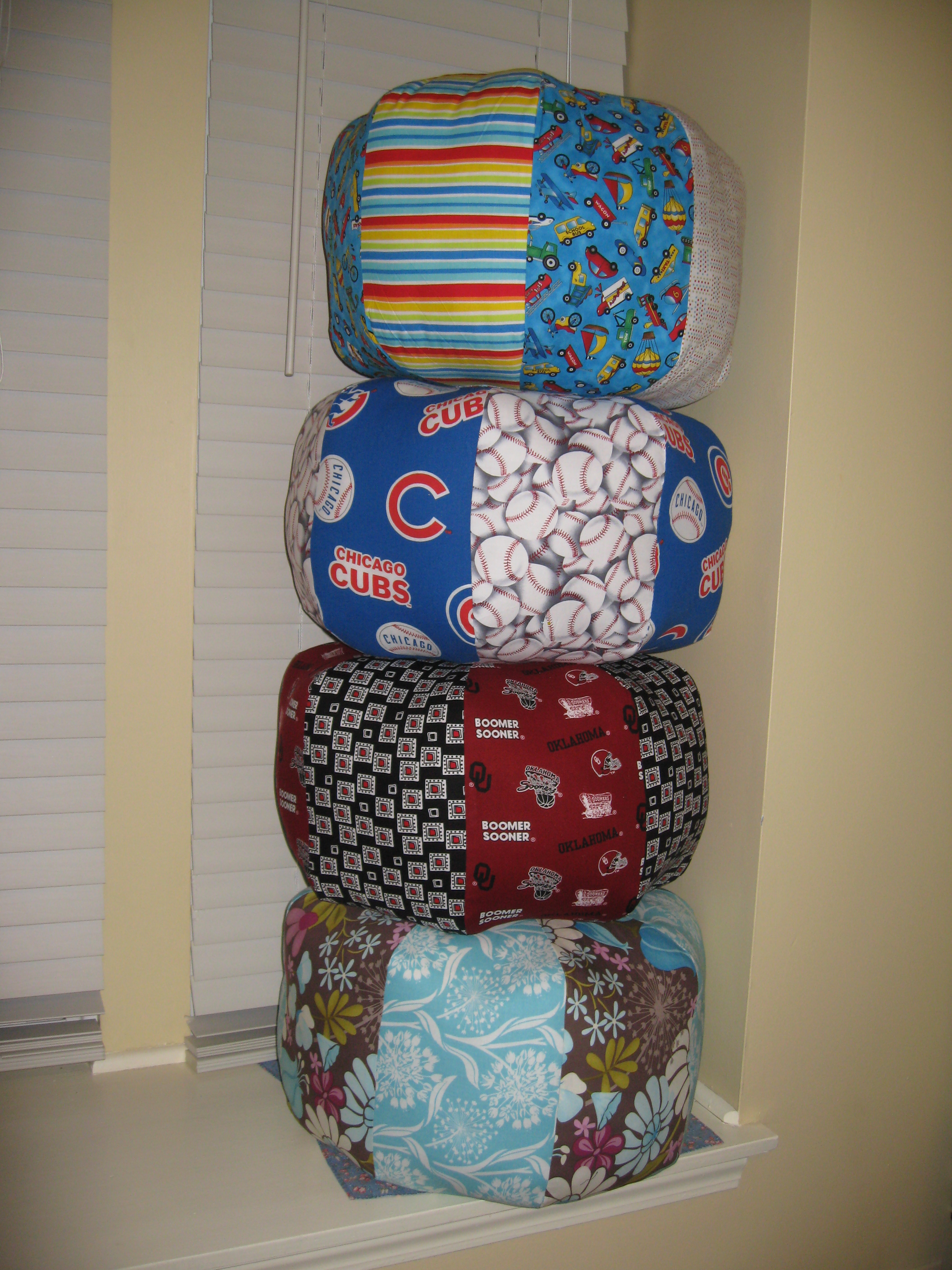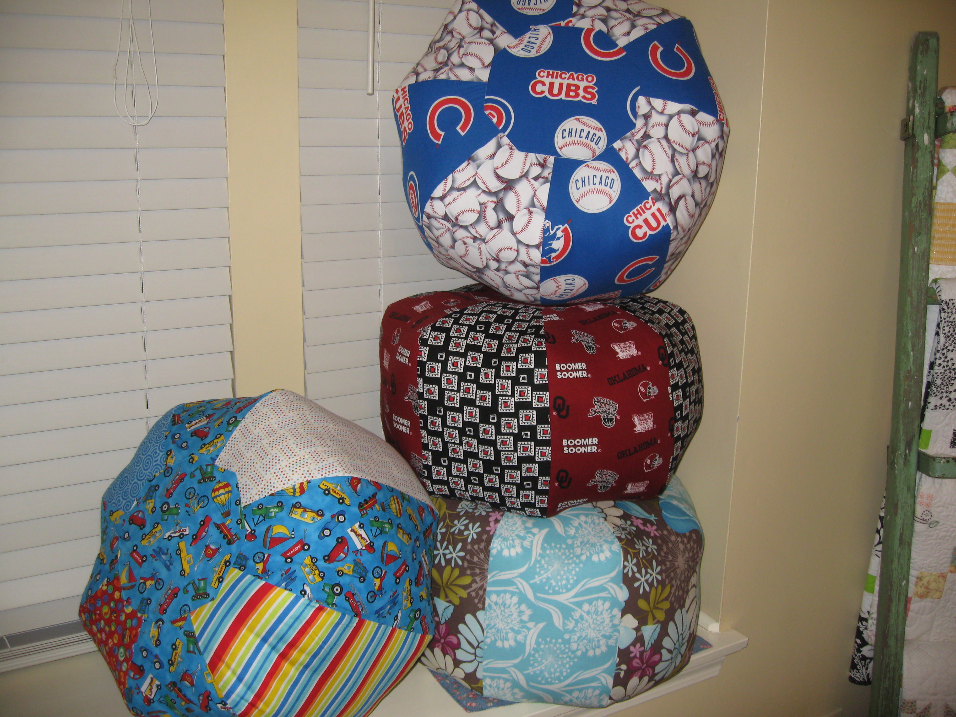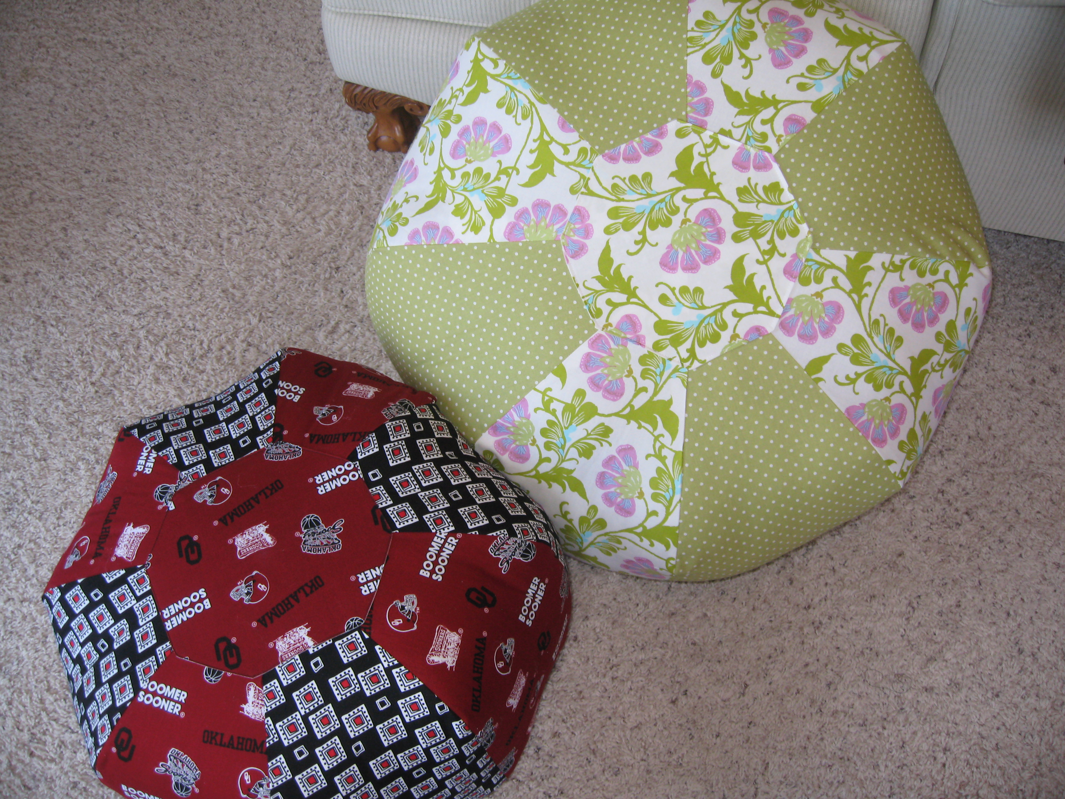 Andrea made the 24″ one out of Amy Butler fabric and polka dots and mine of course is the OU one:)