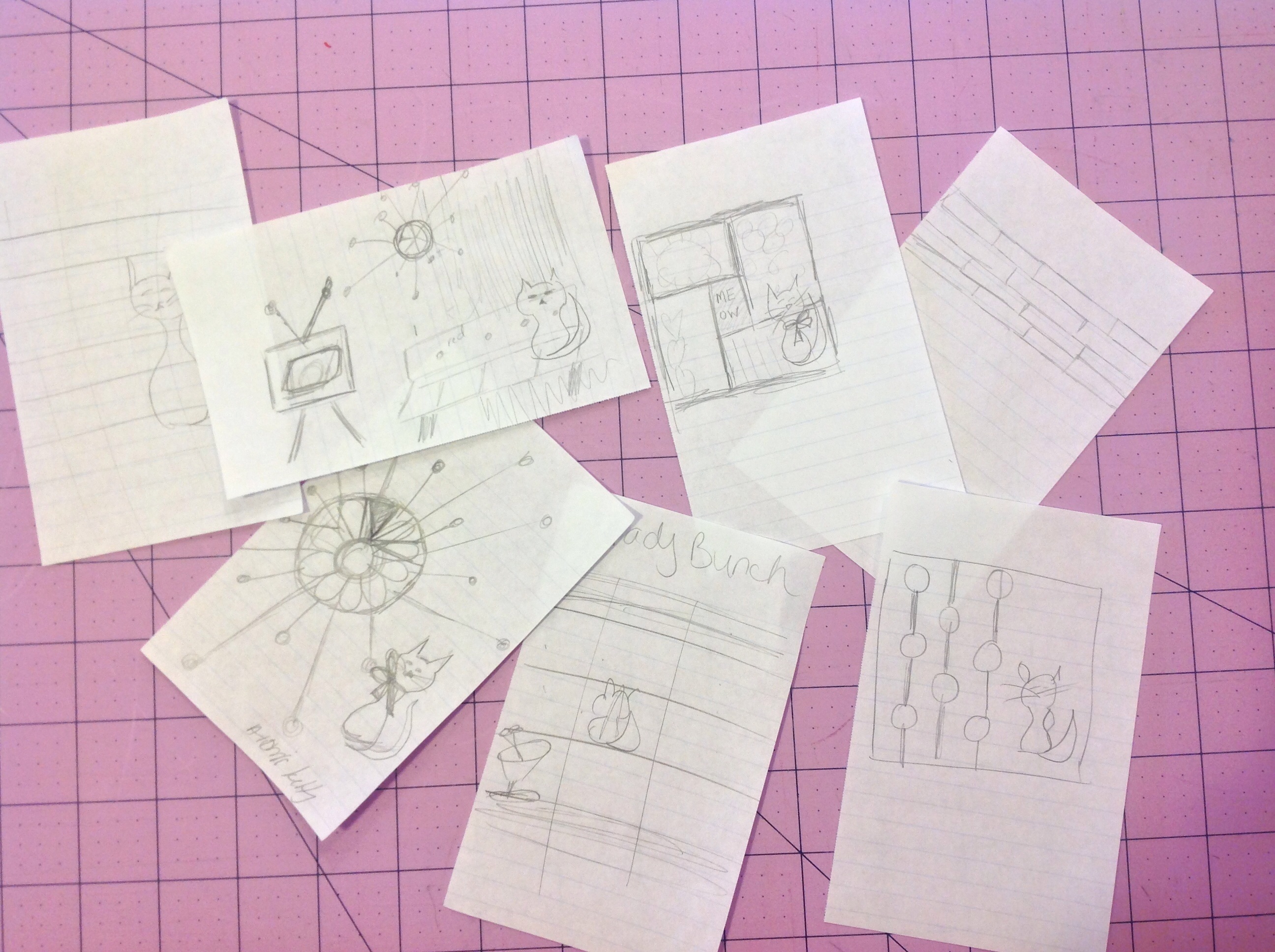 Write down every idea or design that pops in your mind! This one is important. I can’t stress this enough. I do this for my writing also. Even if you don’t think that idea will ever become something you create. Sometimes just one thought/picture/word can catapult creativity. I kept a mini notebook next to me on the couch along with the fabrics. I came up with several ideas, all of them involving a kitty. If you don’t write or sketch your ideas, you will forget them!