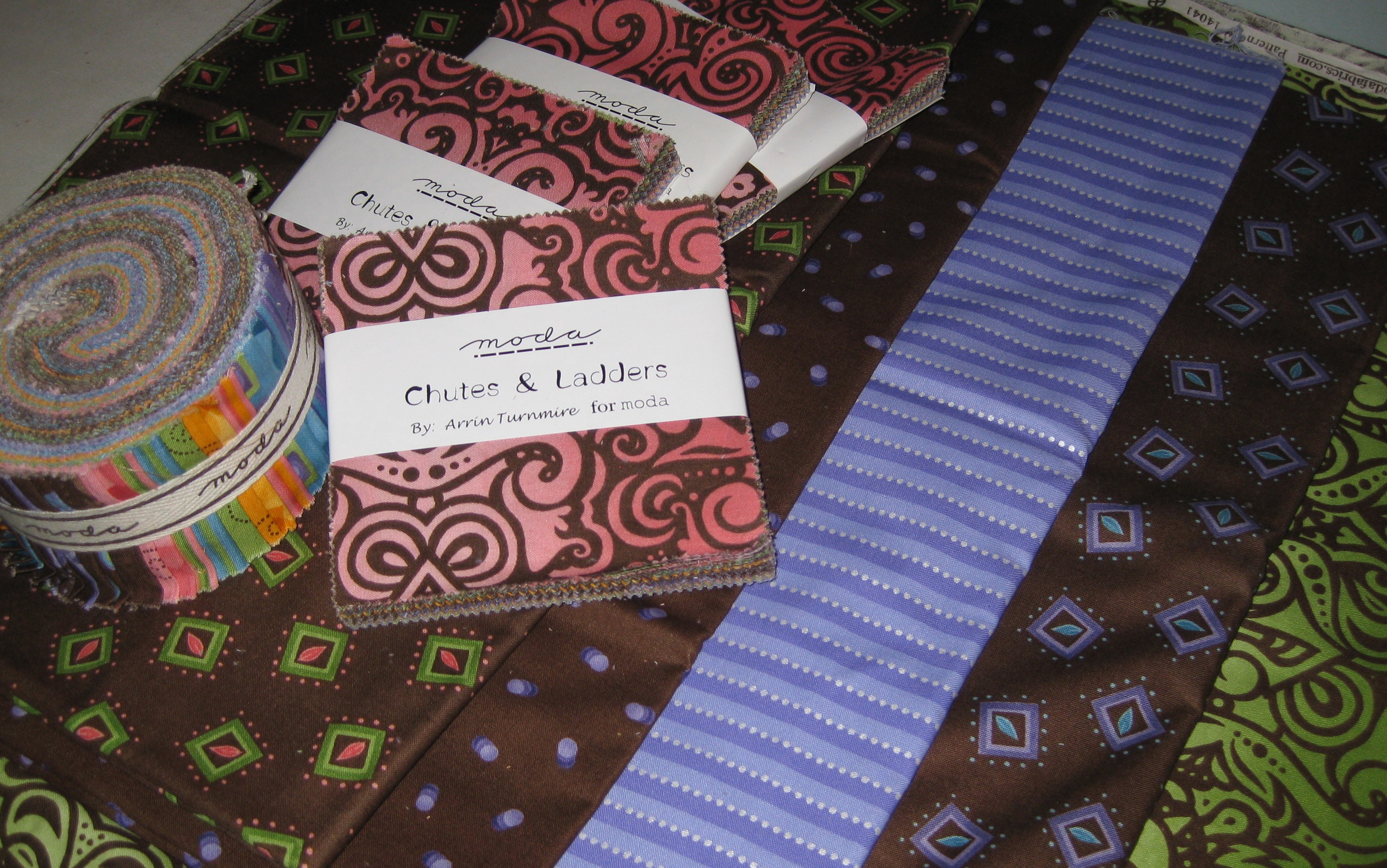 6. I picked up this jelly roll and charm packs at the Rosemont Quilt Show at least 3 years ago. Not my usual style but I was drawn to the combination of the purples, browns and greens. Still haven’t found the right pattern…bought enough of the green for the backing and/or borders.