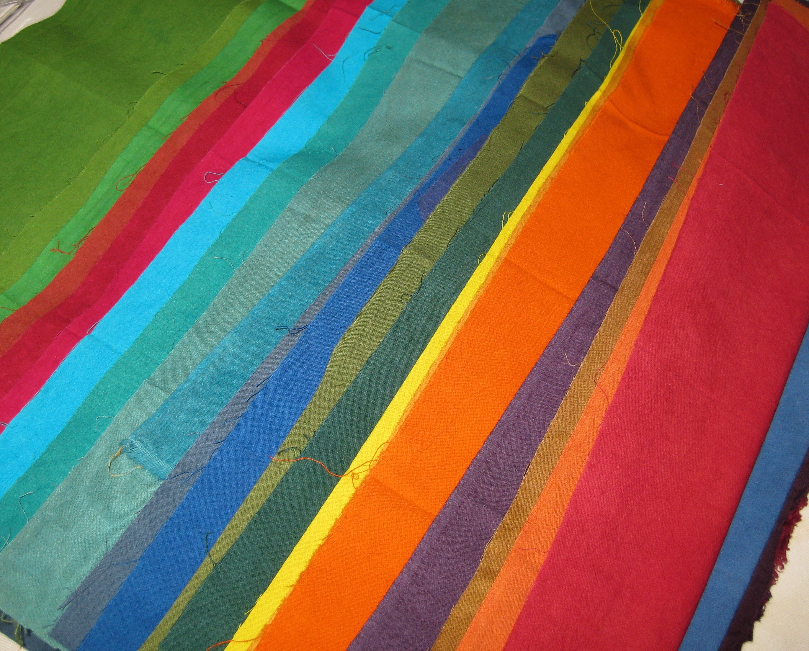 8. I have all these wonderful hand-dyed fabrics…they are pushing 15 years old by now. So beautiful and soft! They actually inspired my very first quilt below which I paper-pieced the summer of 1995 using copier paper… never will do that again! Took forever to pick out all the paper. I also sewed it using my mom’s Singer which had two speeds screamin’ fast or off.