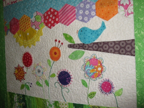 Wonky WildFlowers Borders on, quilted and bound. Super cute!