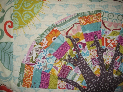 Most of my fabrics were Central Park & Fandango by Kate Spain. I made the tree leaves from just a charm pack. And trees can’t grow without sunshine, right?
