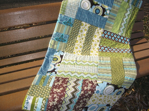 We named this one, Gypsy Road, and it is backed with a chocolate Minky and tied off. No quilting or binding!