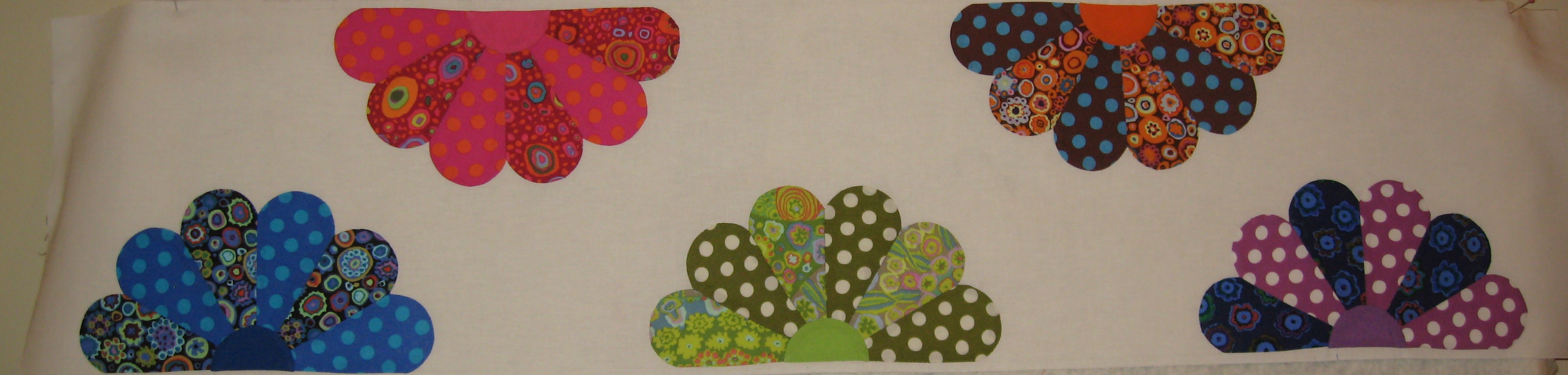 I did a purple dresden…my fave. I really like the flower background fabric on this one.