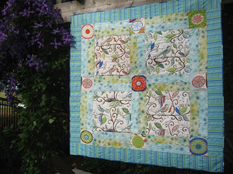 We took Summer Tweets along with us too. The Wrenly fabric was also perfect for these outside pics since it’s full of birdie artwork. There were two perfect spots to display it.