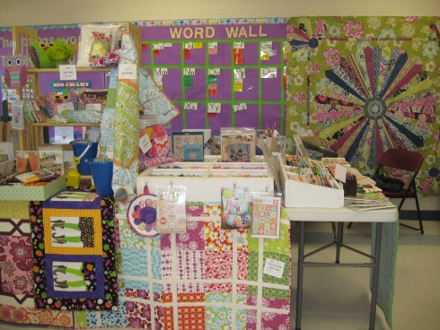 We set up in a small classroom. I was really proud of us for getting everything loaded in an Altima, setting up 2 hours before the show and doing such a great job of displaying everything without pipe and drape this time.